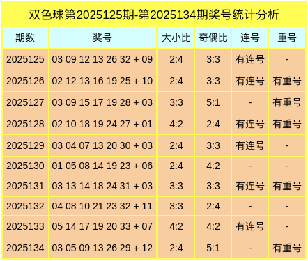 福彩双色球大齐据统计表
